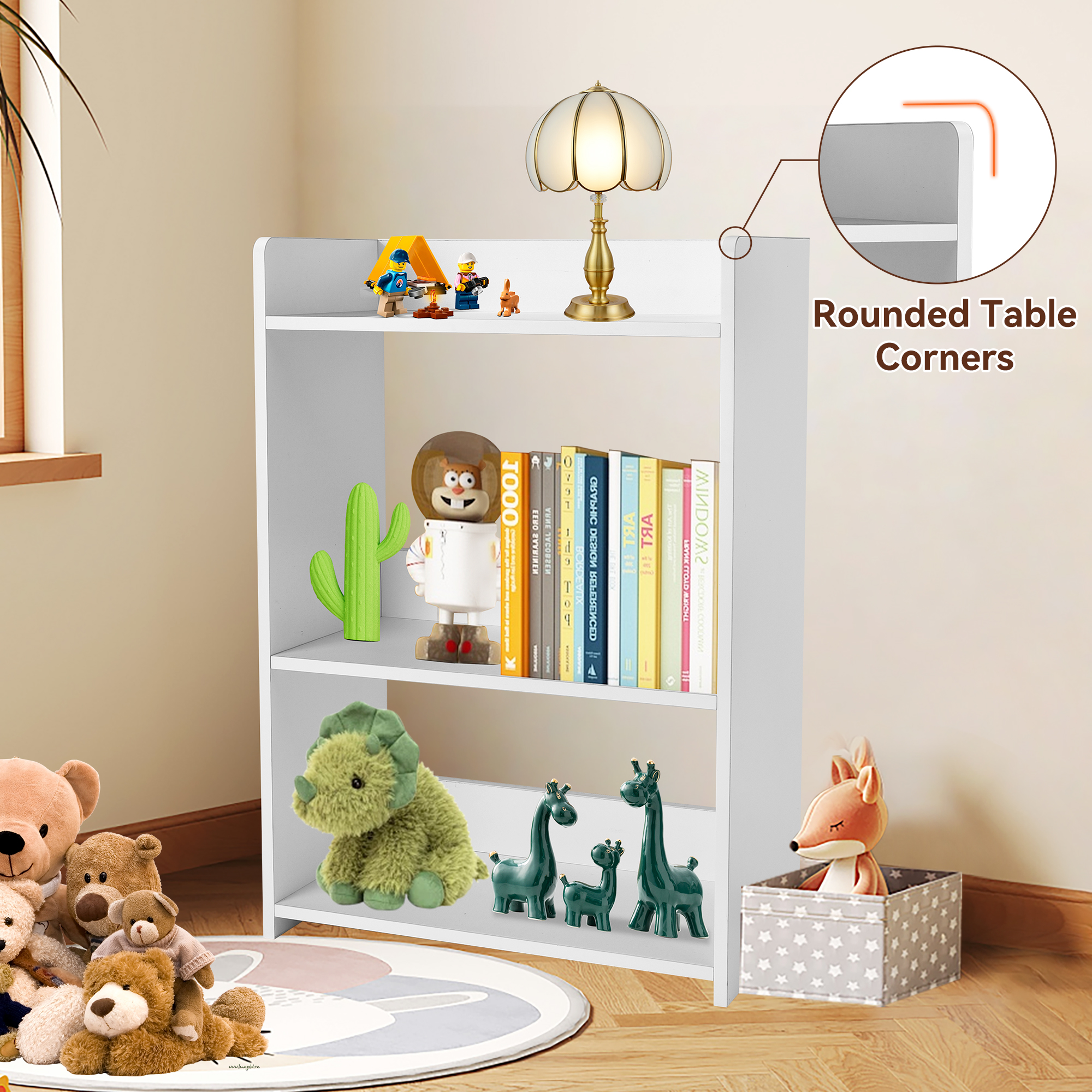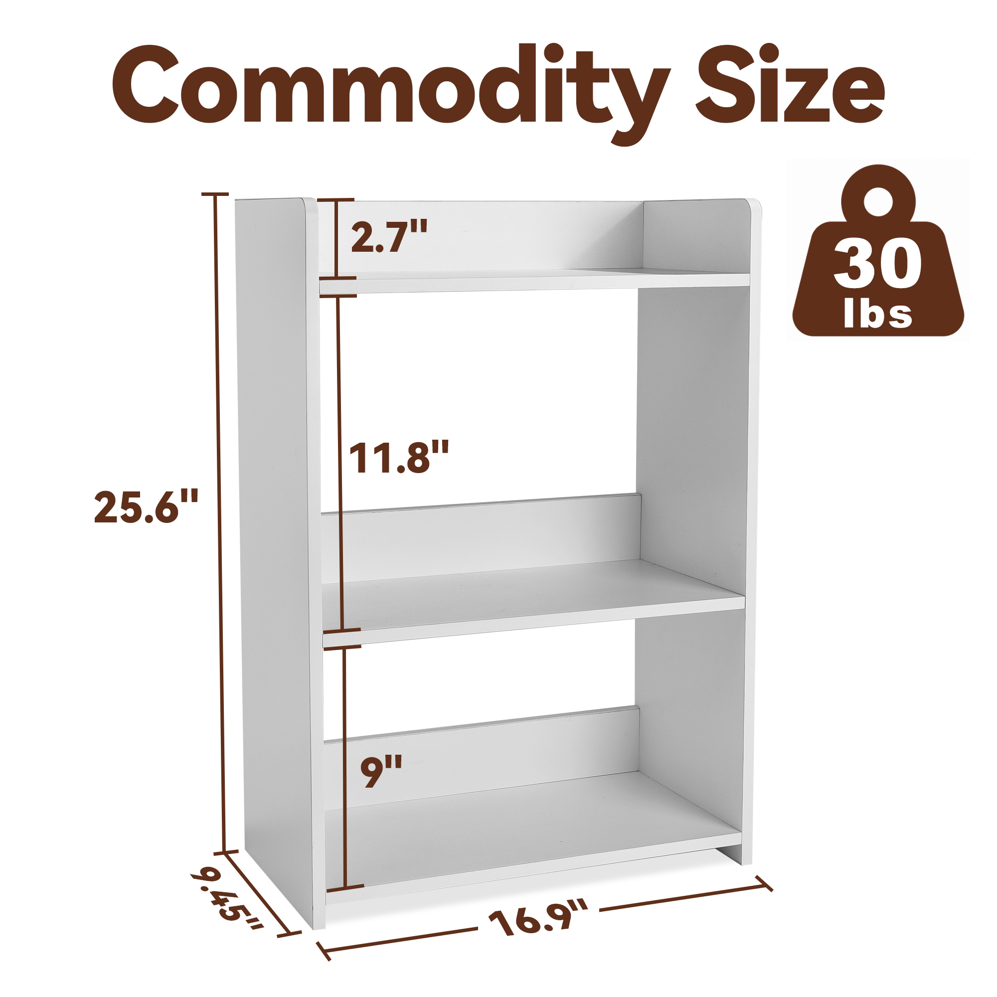 - 【Kid Friendly Storage】3 shelf Bookshelf For Toddlers To Safely Store And Access Toys/Books, Specially Made Rounded Edges And Wobble-Free Base Design To Ensure The Safety Of The Activity Space, And The Middle Tier Of Shelves Is Specially Raised 11.8 Inches, Perfect For Storing Picture Books, Plush Toys And Art Supplies.