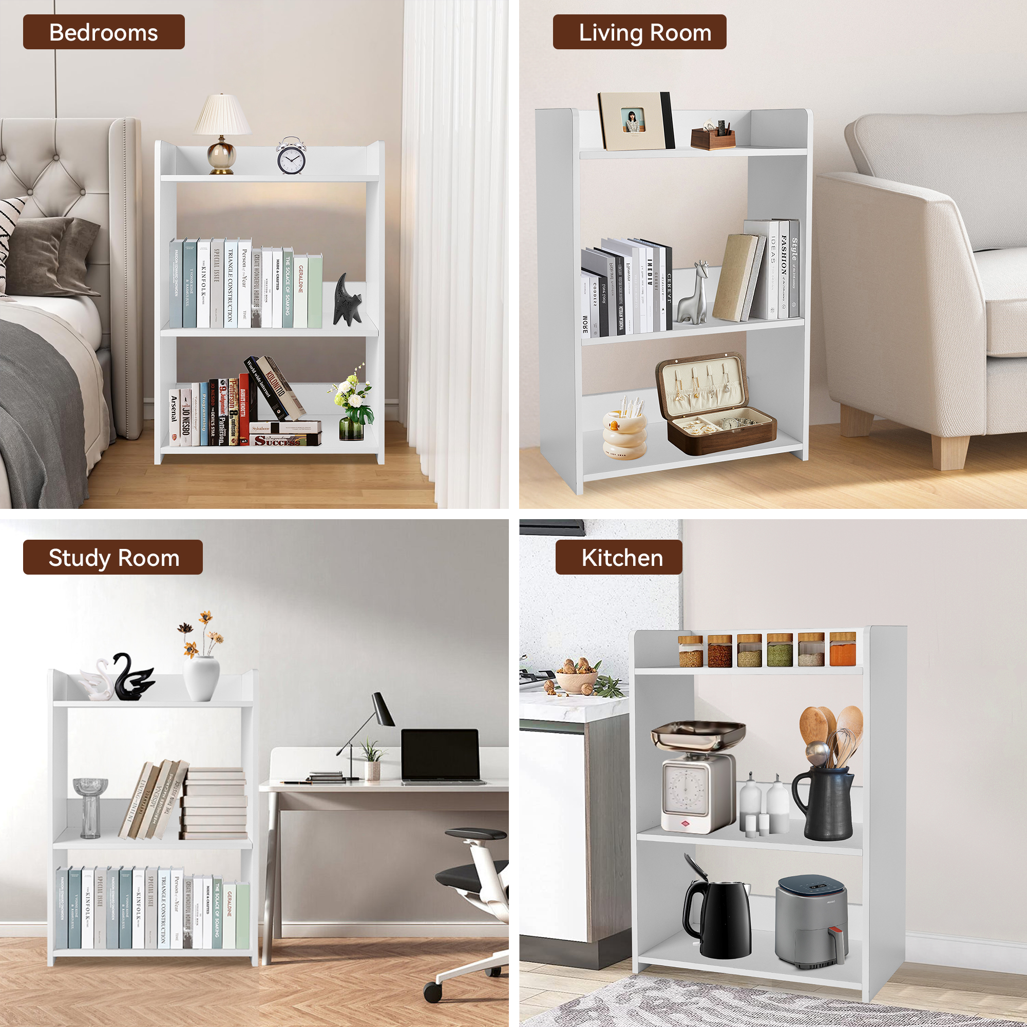 - 【Space Saving Design】Designed for Tight Spaces , This Small Bookshelf Features a 3-Shelf Open Design That Maximizes Vertical Storage Space, And an Unobstructed Top Shelf That Offers Endless Possibilities for Large and Tall Objects, So You Can Put Whatever You Want on Display.