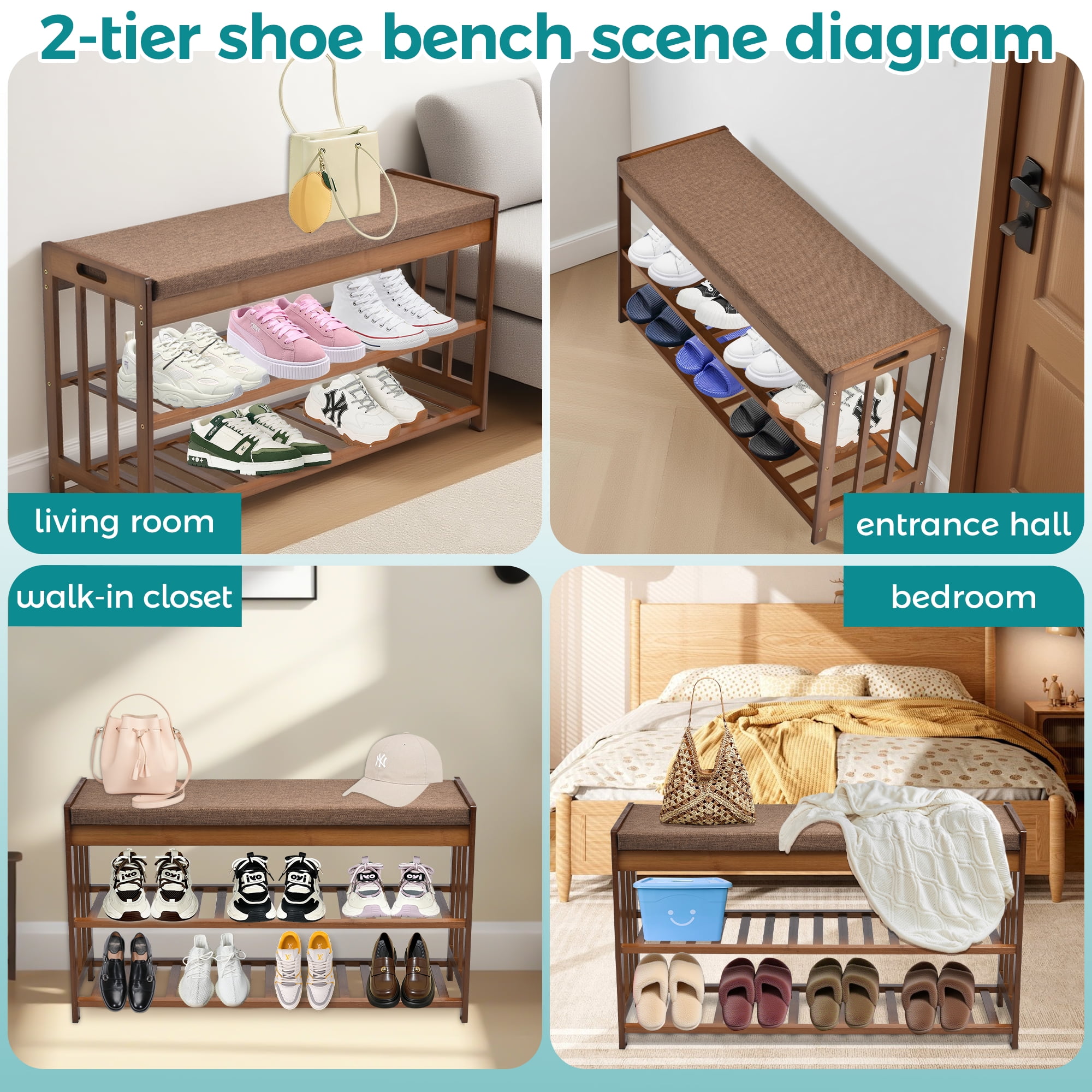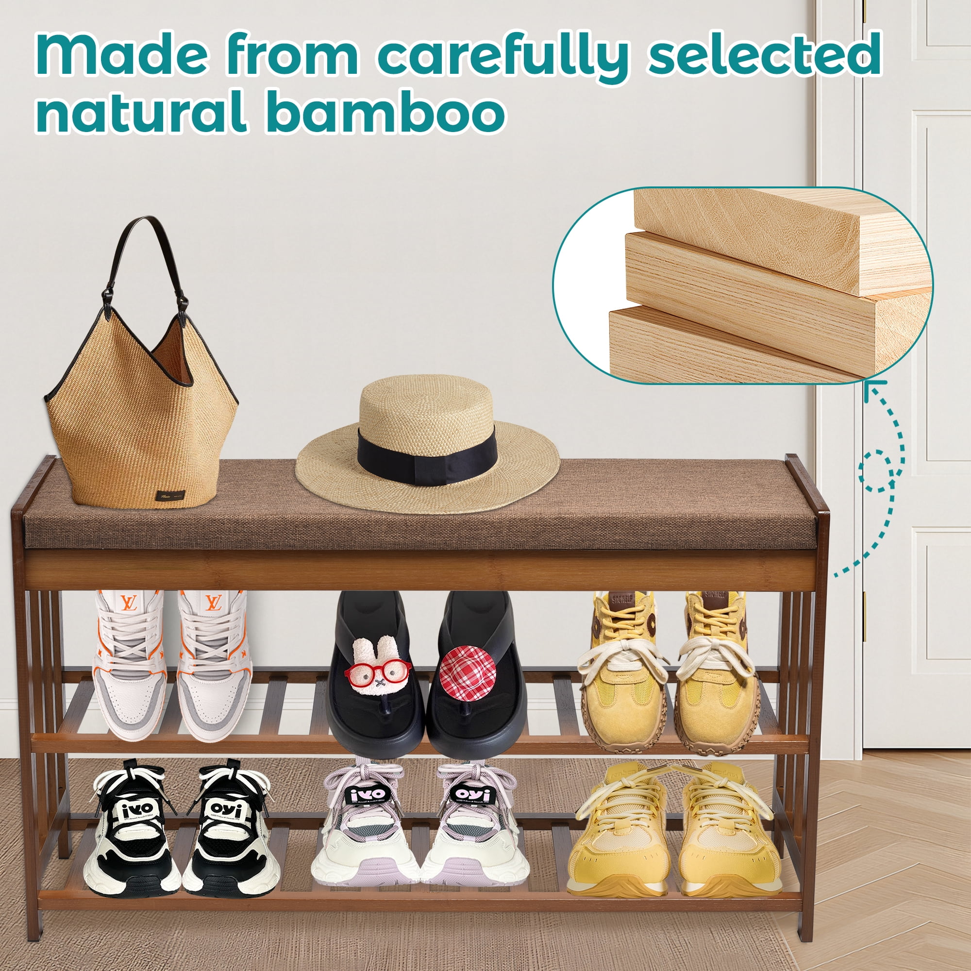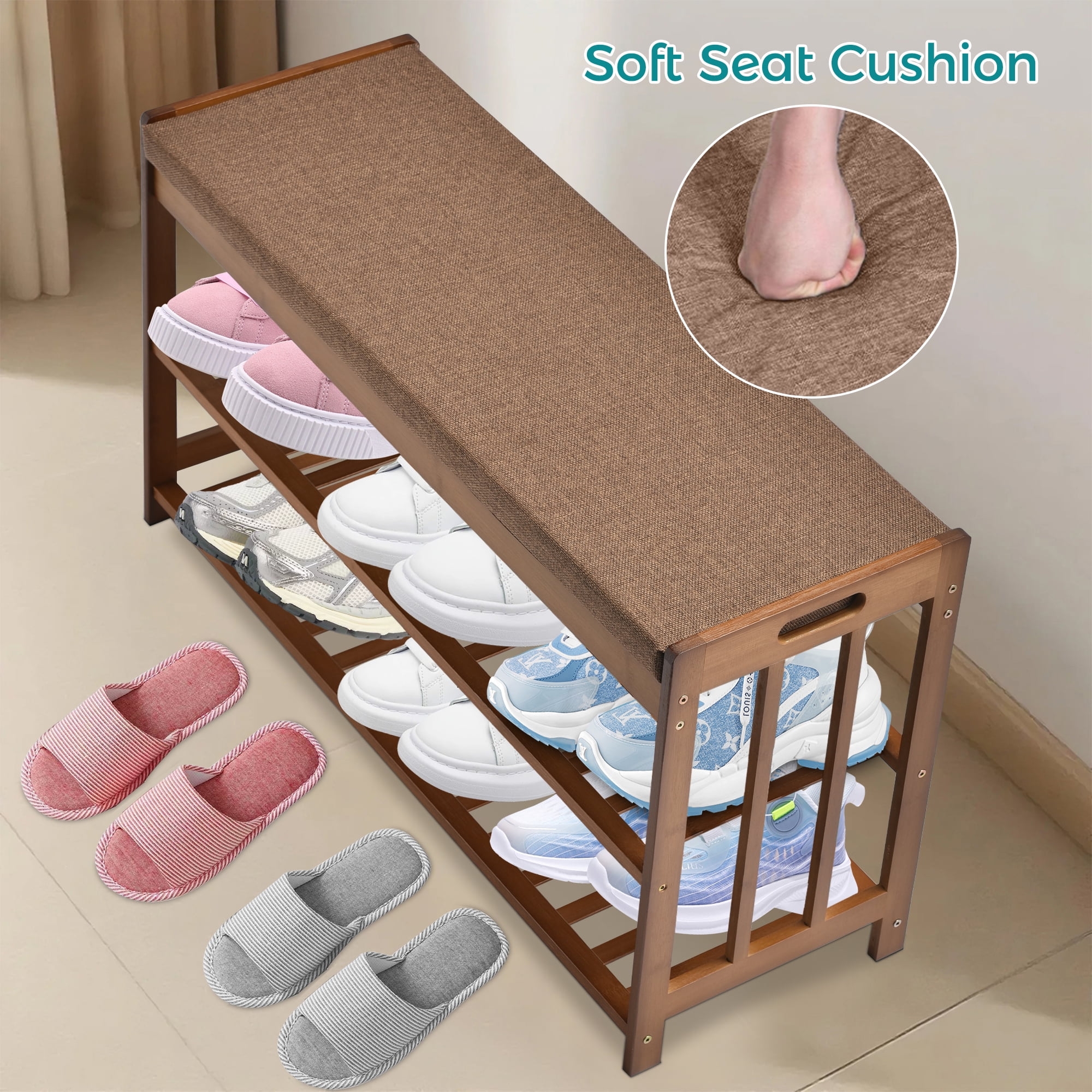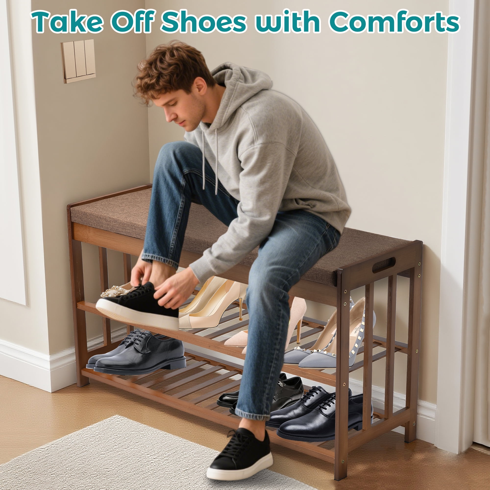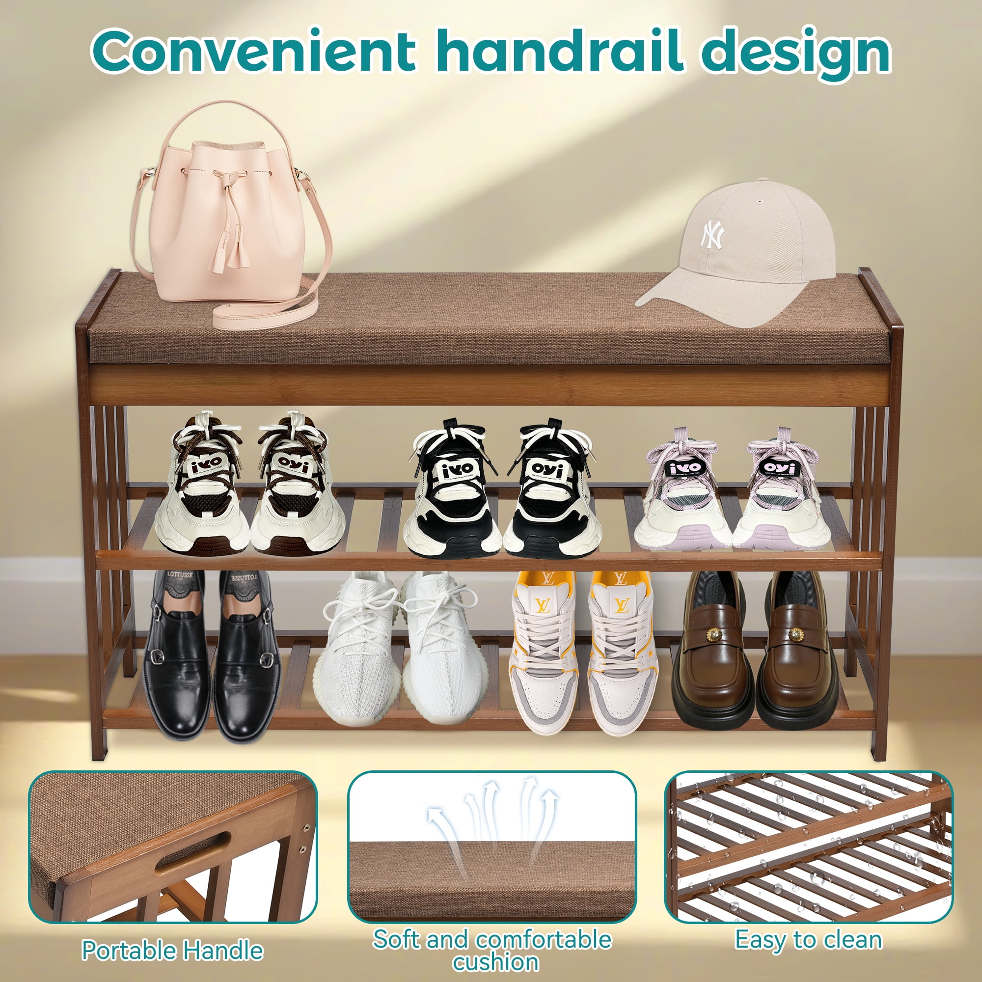 - 【 Three-Layer Storage, Comfortable Shoe Changing 】 This Shoe Rack Bench Ingeniously Combines Three-Layer Storage with Thickened Soft-Padded Seats, Easily Storing up to 6 Pairs of Frequently Worn Shoes. Sitting on the Soft Cushion and Changing Shoes Calmly, You Can Instantly Relieve Your Fatigue. It Is the Ideal Choice for Your Entrance Space.