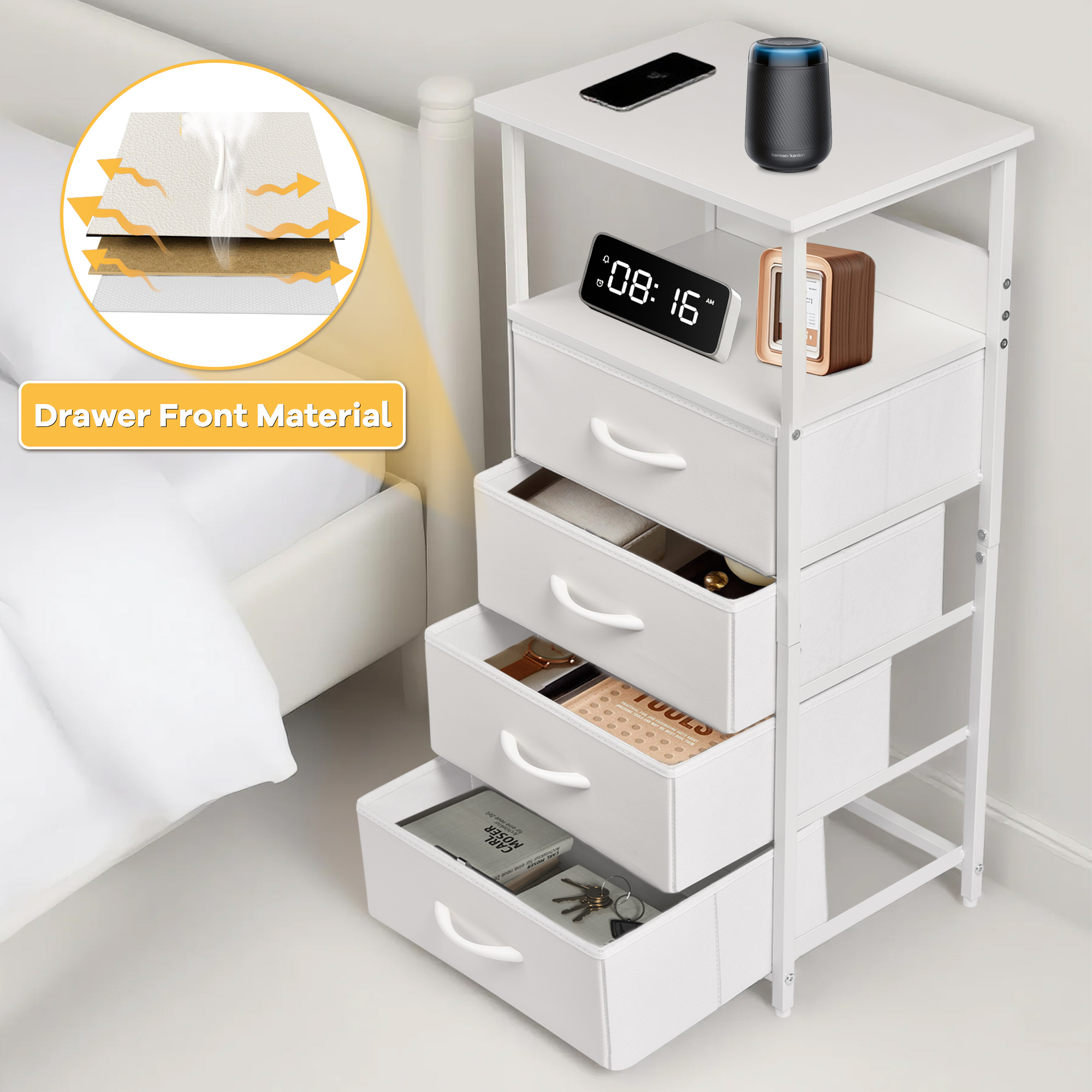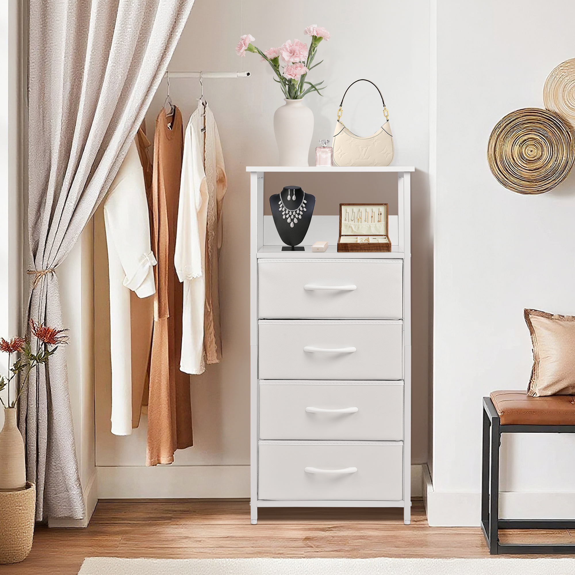 Upgrade Your Bedroom Storage with the YEEZEE Tall 4 Drawer Dresser. This Sleek, White Chest of Drawers Combines Minimalist Design with Exceptional Functionality. It's More Than Just a Fabric Dressers for Bedroom; It's a Versatile Storage Solution That Functions as a Spacious Night stand , A Modern Fabric Drawer Dresser for Bedroom, And a Space-Saving Organizer for Any Room. Designed for Modern Living, It Offers the Perfect Blend of Style, Storage, And Stability.