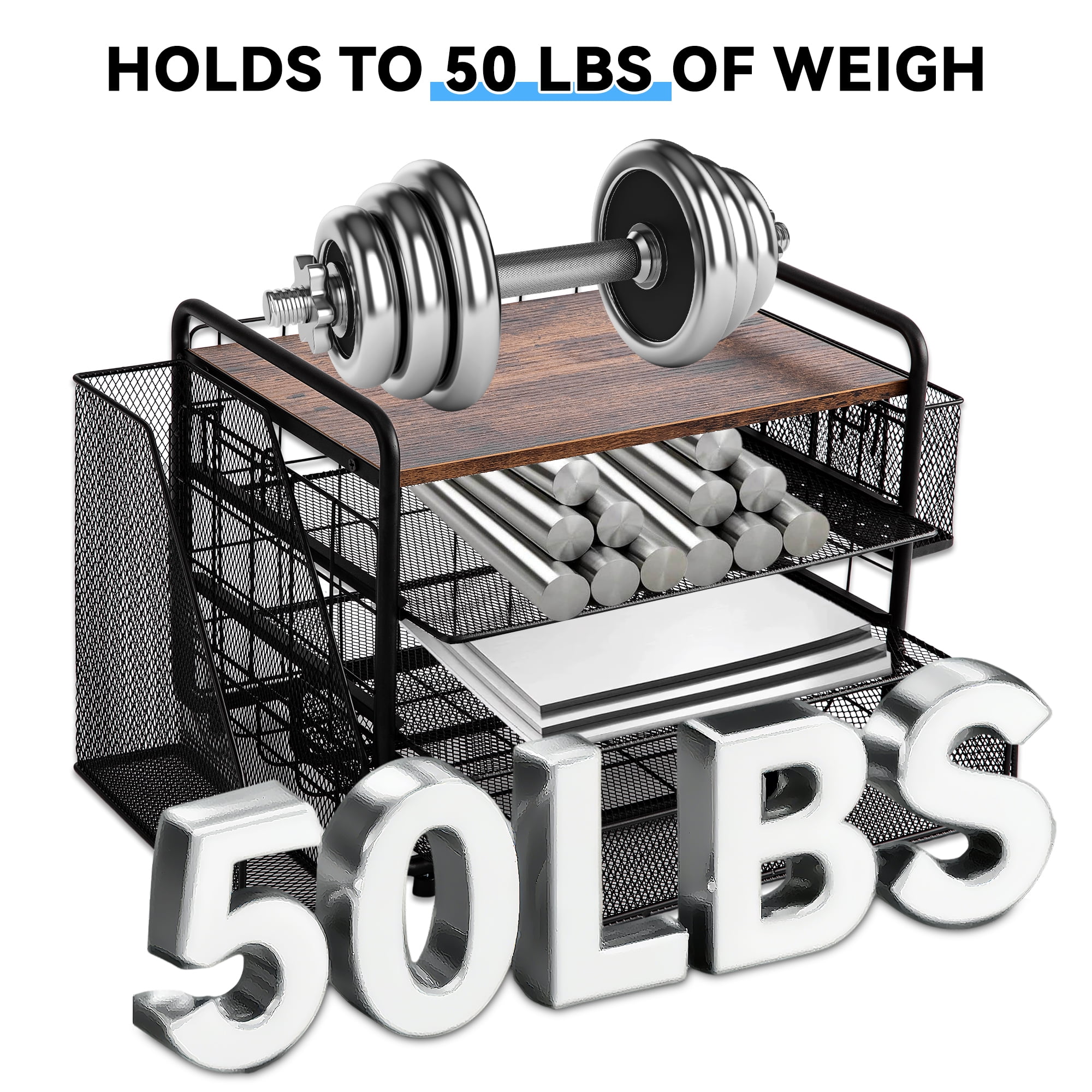 - 【 Metal Grid Frame 】 The Desktop Storage Organizer Is Made of High-Quality Metal Material, Which Is Stable, Durable and Has Strong Load-Bearing Capacity. The Fashionable Grid Structure Is Low-Key and Has a Good Texture, And It Is Long-Lasting and Not Easy to Deform.