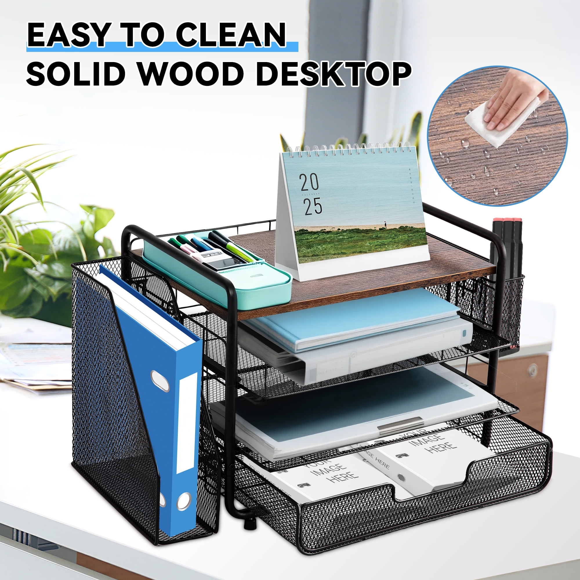 - 【 Walnut Wood Top Plate 】 The Solid Wood Top Plate of the Paper Organizer for Desk Is Finished with Dark Walnut Wood, Elegantly Enhancing the Grade of the Desktop, Saying Goodbye to the Cheap Feeling, And Creating a Professional and Elegant Office/Study Environment.