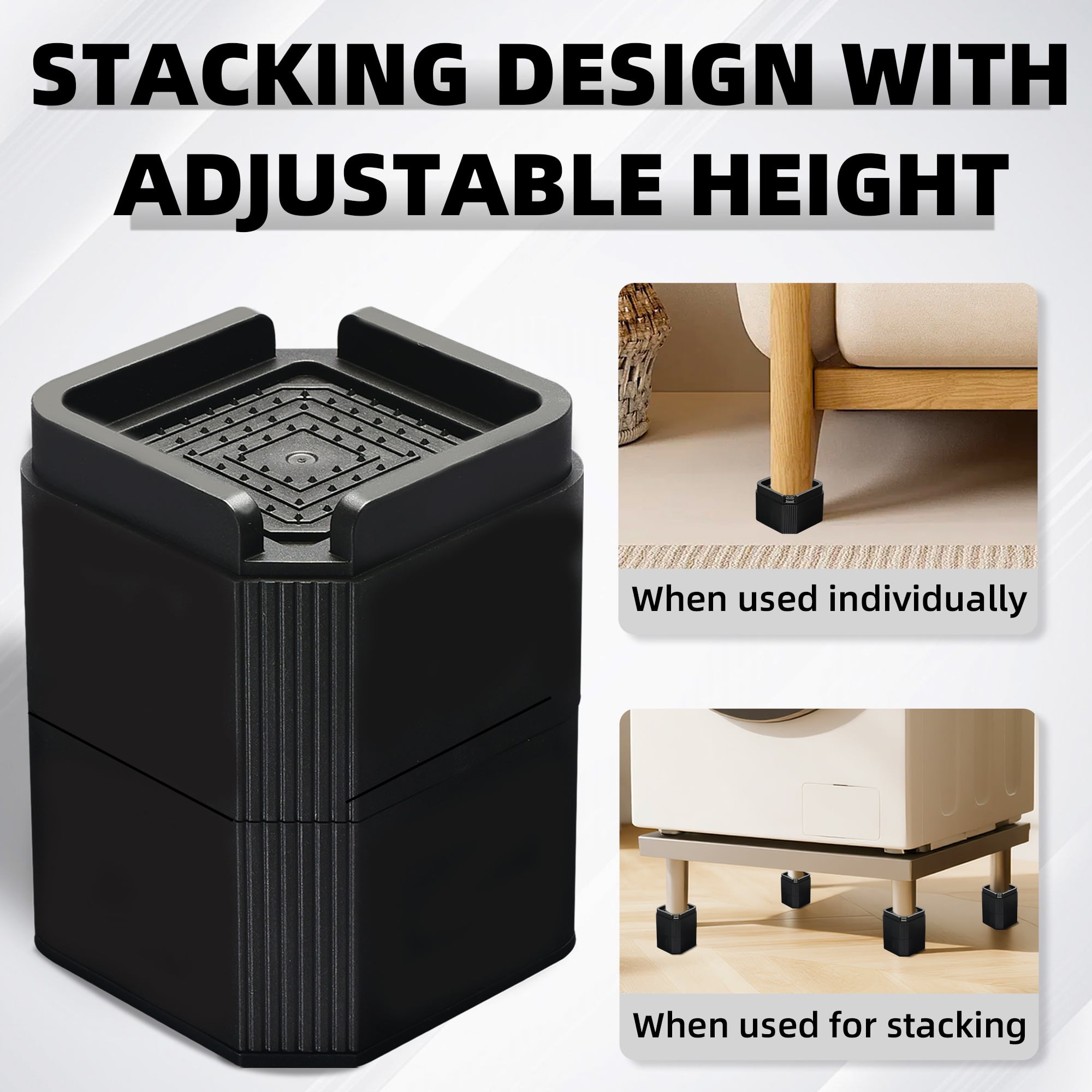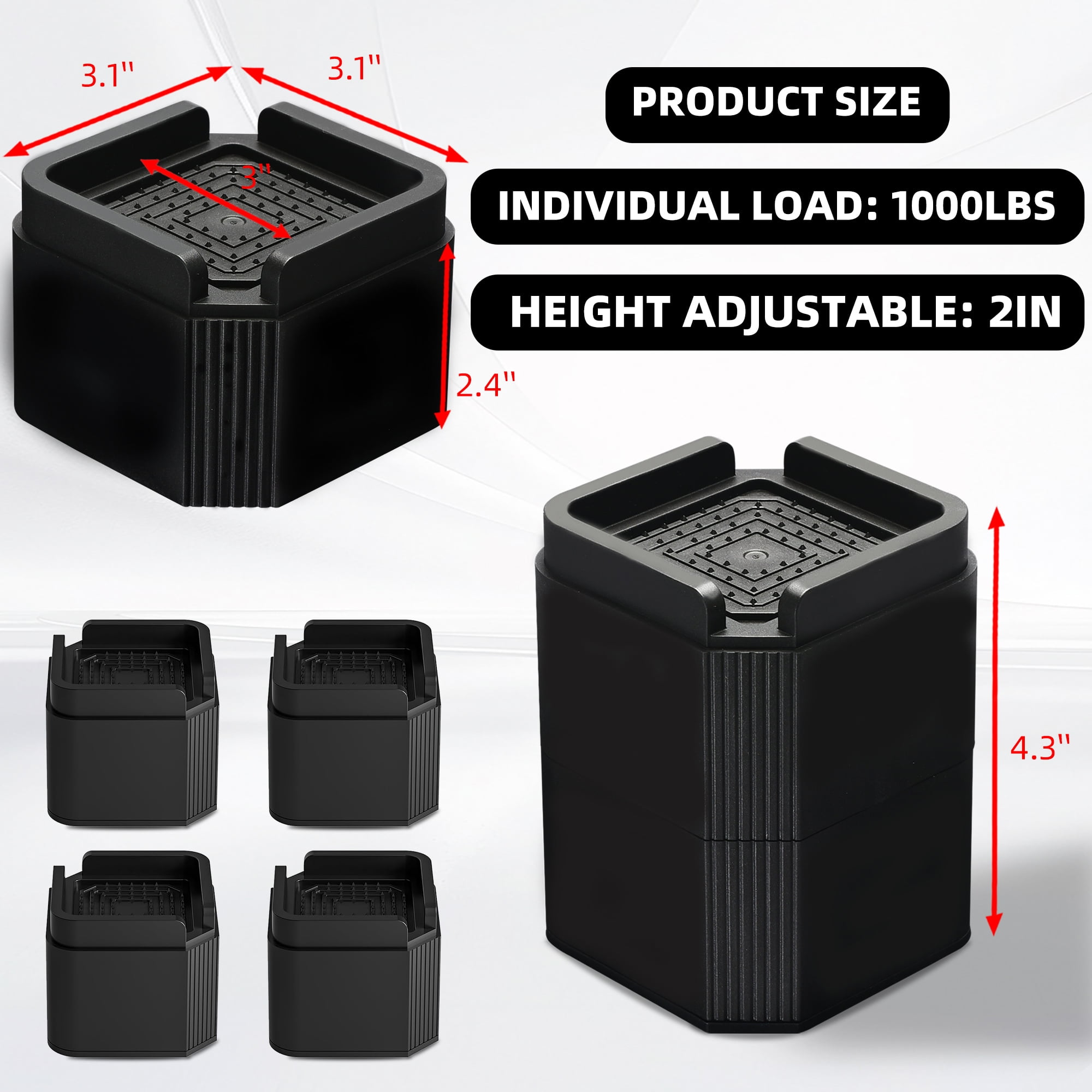 - 【 Super Strong Load-Bearing Performance, Safe and Stable Support 】The Bed Risers Heavy Duty Are Made of High-Strength Anti-Slip Plastic, With a Single Piece Load-Bearing Capacity of up to 1000 Pounds. When Combined, It Can Firmly Support Even Heavier Furniture (Up to 1800 Pounds), Ensuring Reliable and Durable Quality.