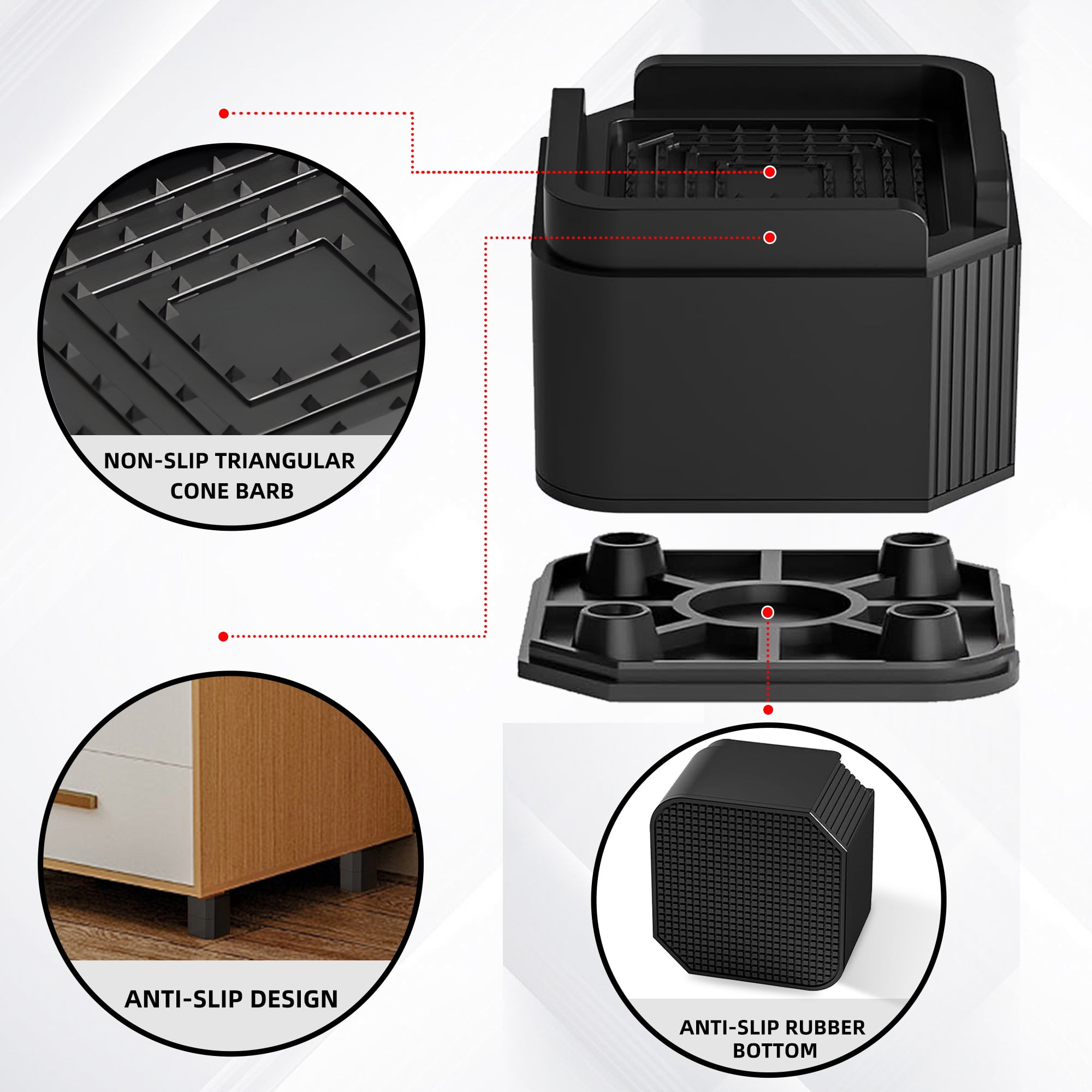 - 【 Strong Anti-Slip and Shock-Absorbing, Protecting the Floor and Furniture 】 The Riser Surface Is Designed with Triangular Pyramid Hooks and the Bottom Is Made of Tpu Rubber, Providing Dual Anti-Slip and Anti-Displacement Features. It Effectively Absorbs Vibrations and Prevents Furniture from Sliding and Floor Scratches.