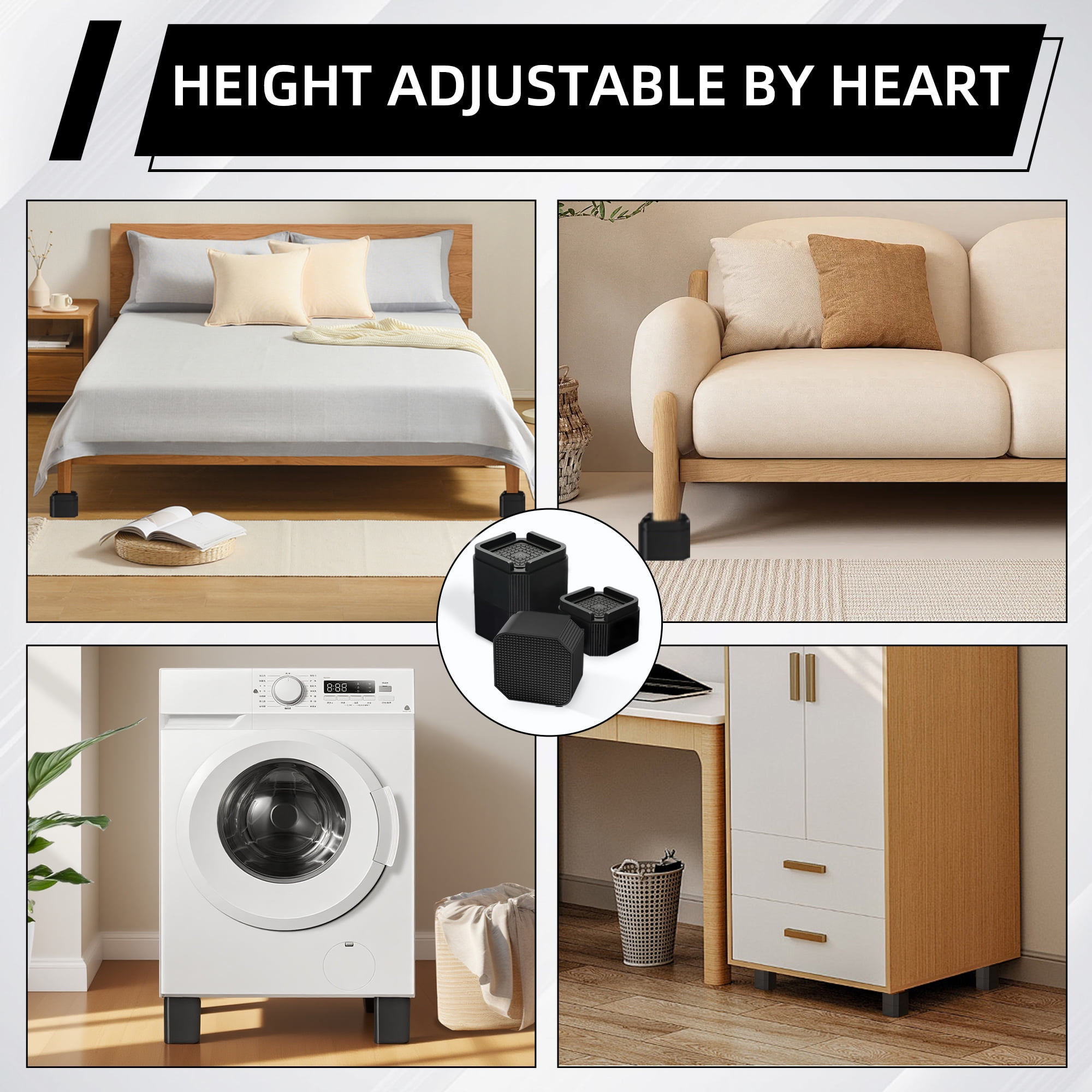 - 【 Wide Application Scenarios, Multi-functional and Worry-Free 】 The Bed Lifters and Risers Are Specially Designed for Homes Such as Beds, Sofas, Tables and Chairs, Cabinets, And Washing Machines. They Can Be Raised in Height While Creating Storage Space, Making It Especially Convenient for the Elderly to Get in and out of Bed.