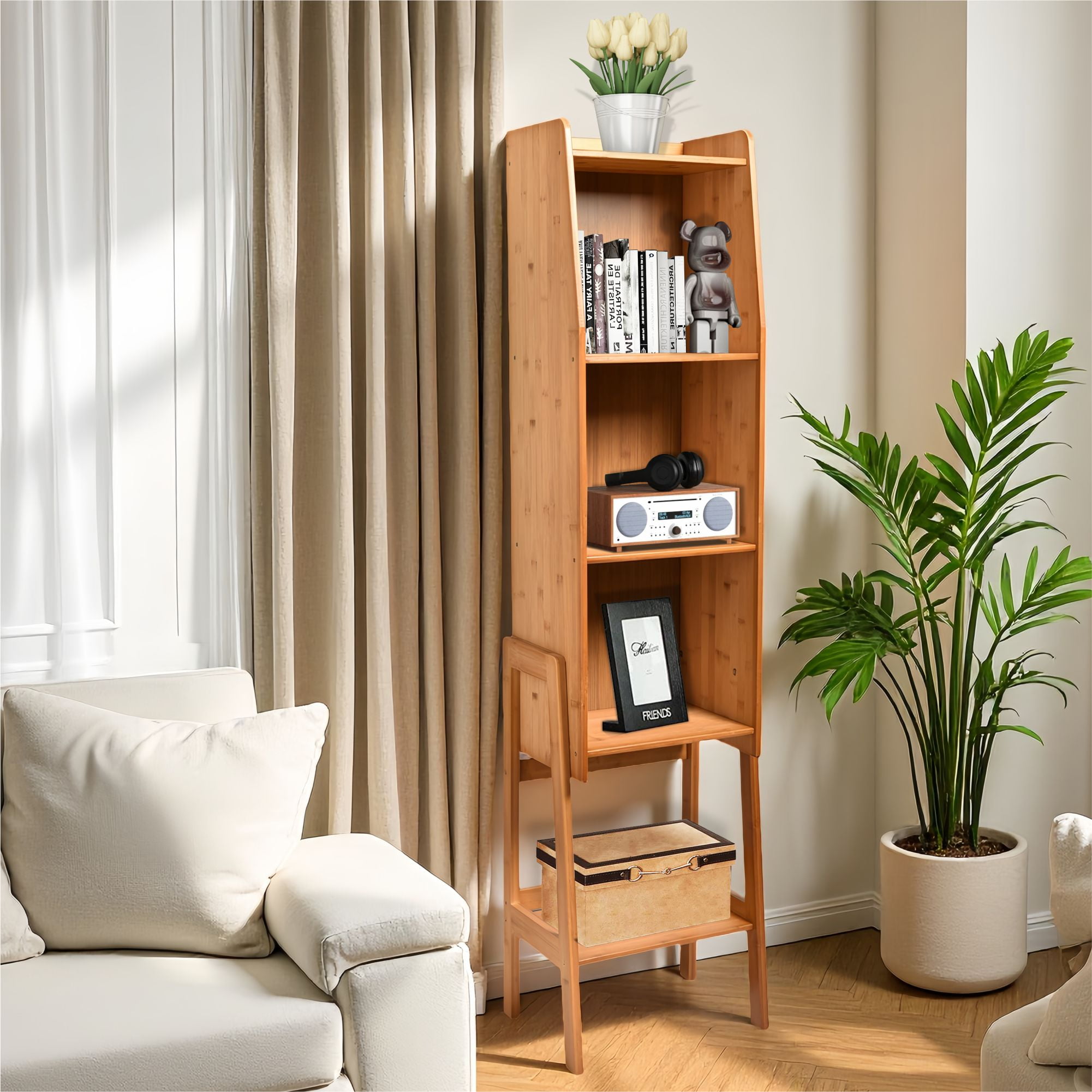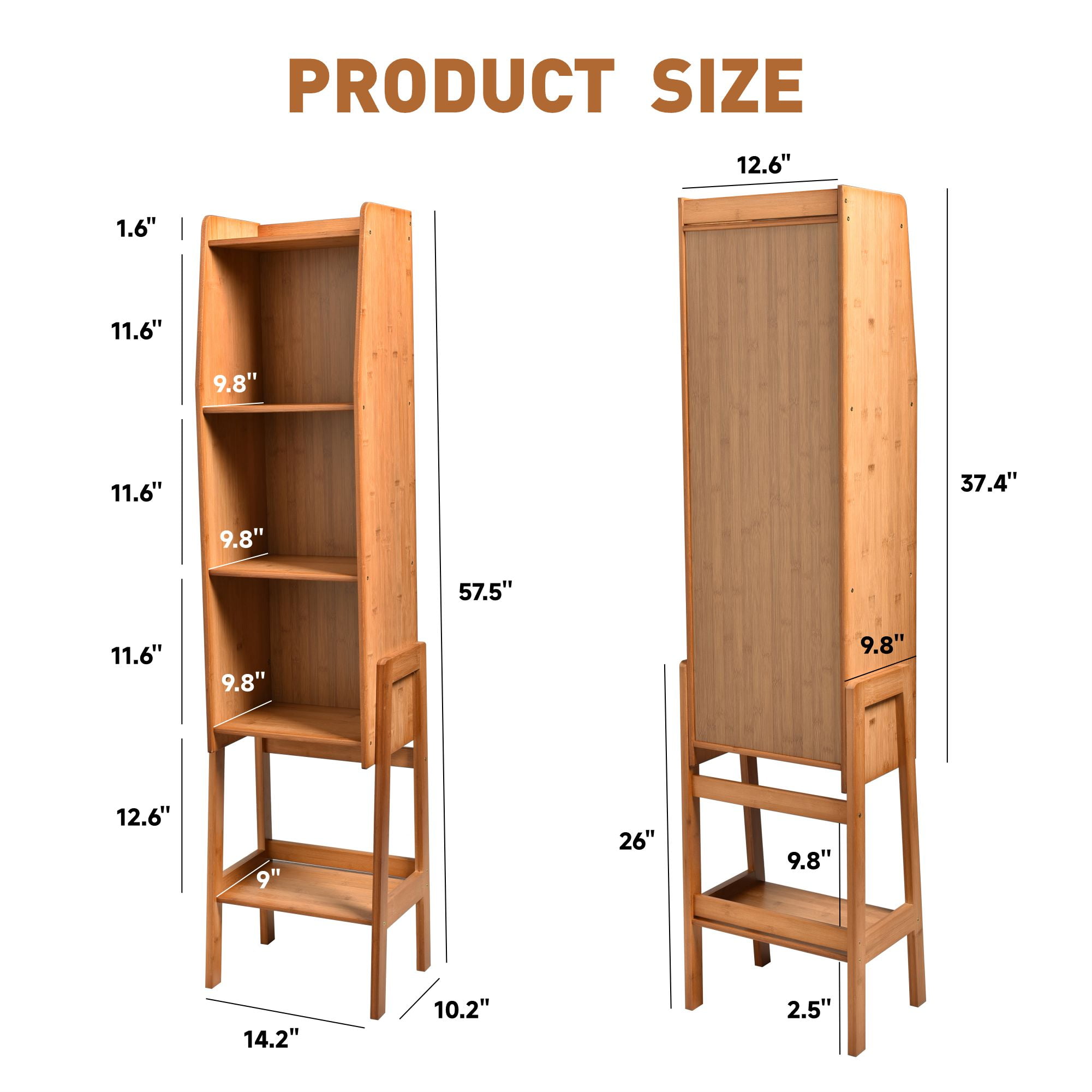 - 小空间垂直扩展:书架窄柜设计,垂直延伸,节省地面空间(14.2 英寸长 X 10.2 英寸宽 X 57.5 英寸高),适用于狭窄角落或小空间,有效利用墙壁或角落区域,解决小空间收纳难题。