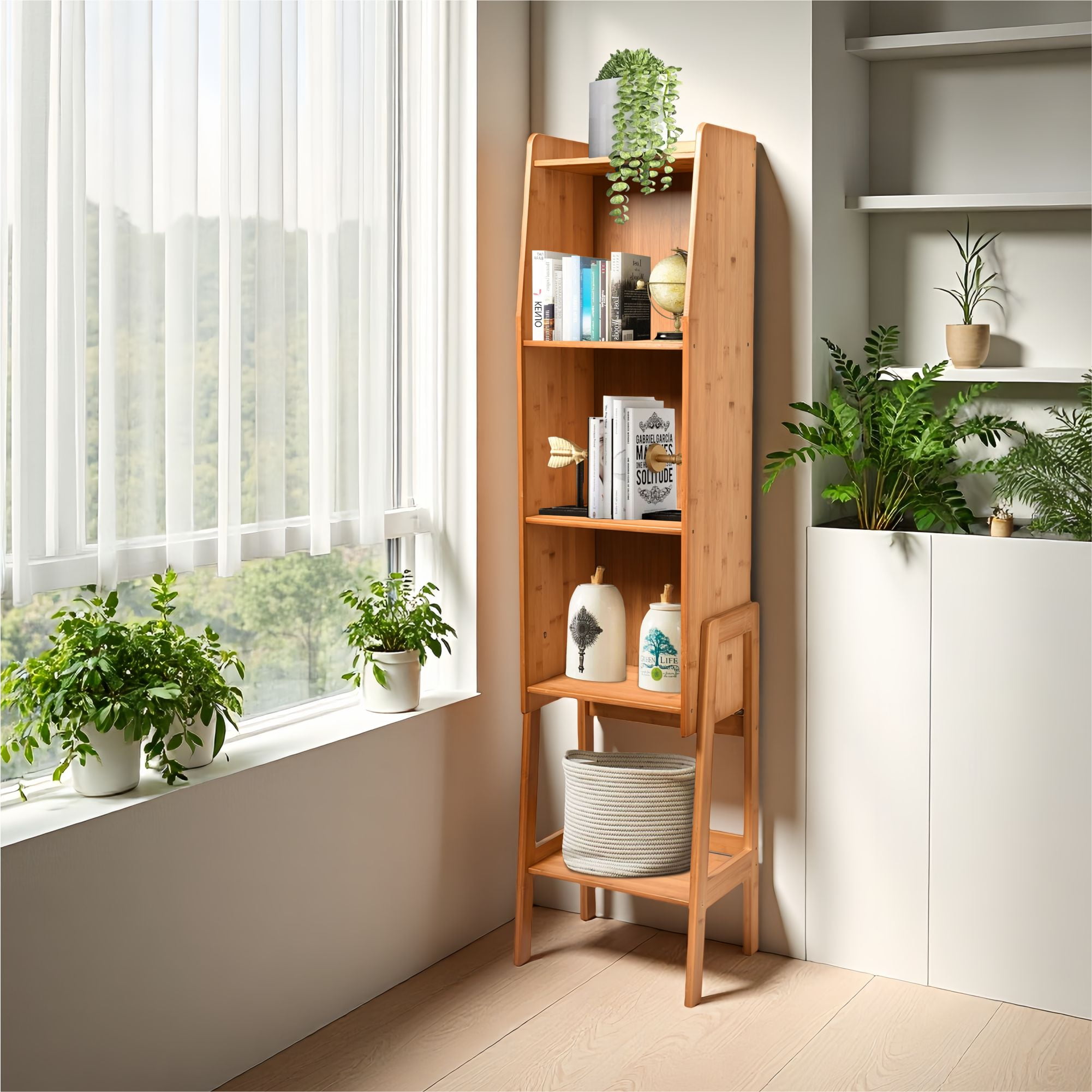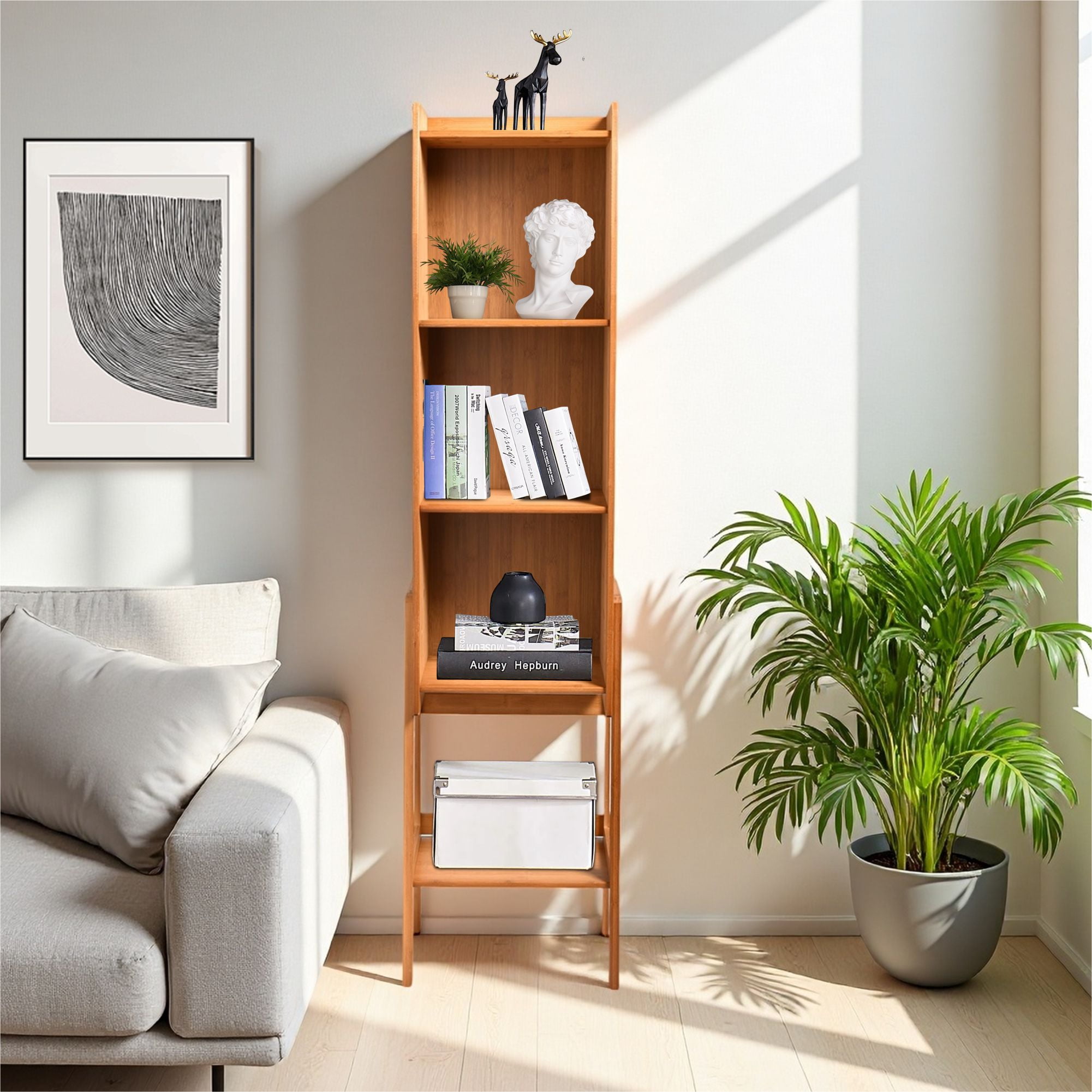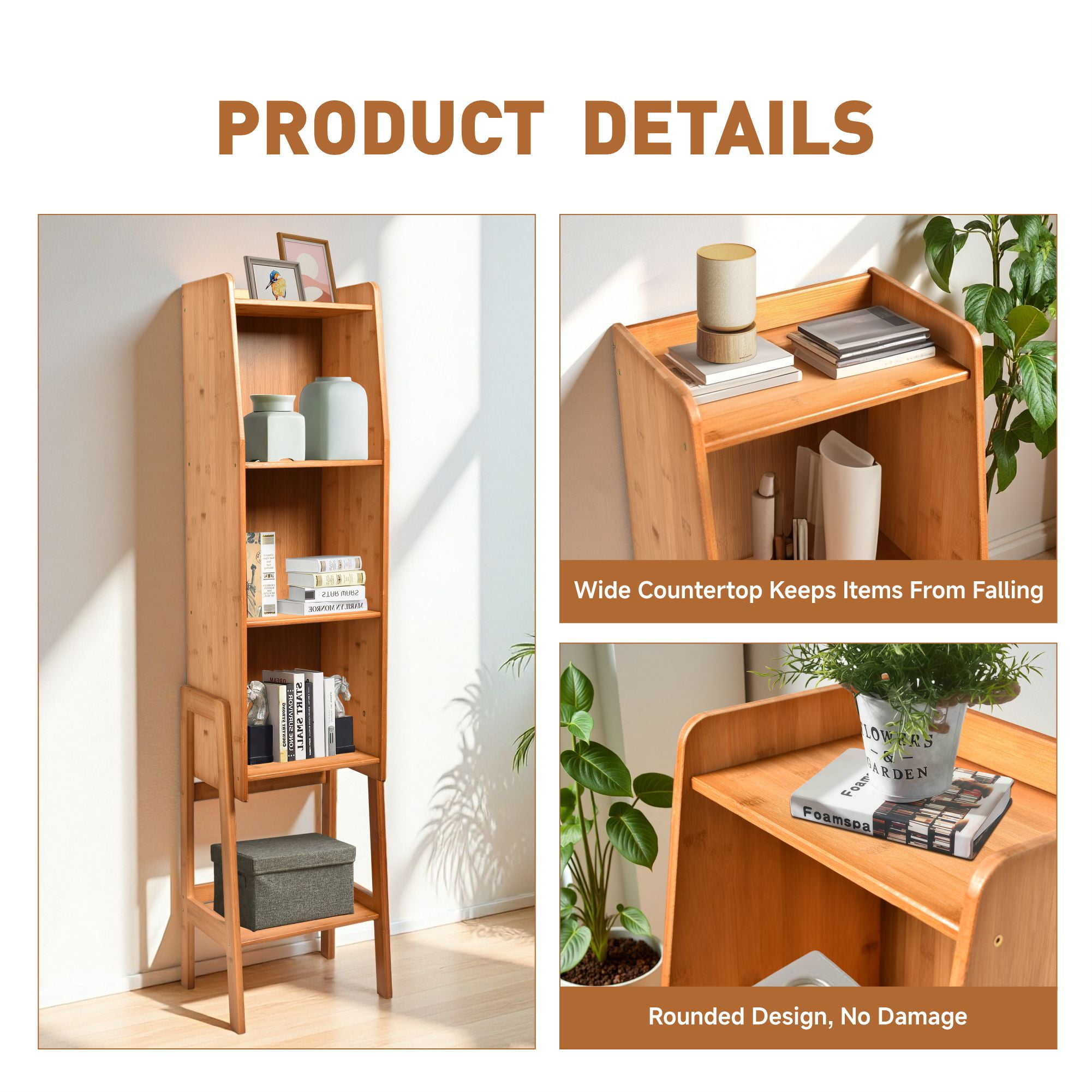 YEEZEE 五层书架采用竹子和多层实木背板制成,确保床头柜外观优雅。这款多功能梯形书架设计简约,采用中性色调,可与任何家居、办公室、卧室、儿童房或厨房的装饰风格相得益彰,是优雅乡村风格住宅的完美之选。高大书架的开放式结构充分利用了有限的空间,而 11.6 英寸的层板间距为您的日常必需品提供了充足的存储空间,方便取用,触手可及。这款书架可与其他家具搭配使用,是小空间住宅的首选。