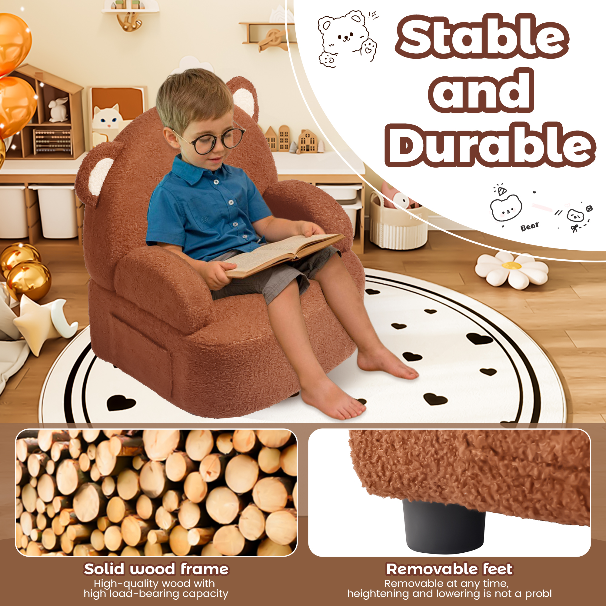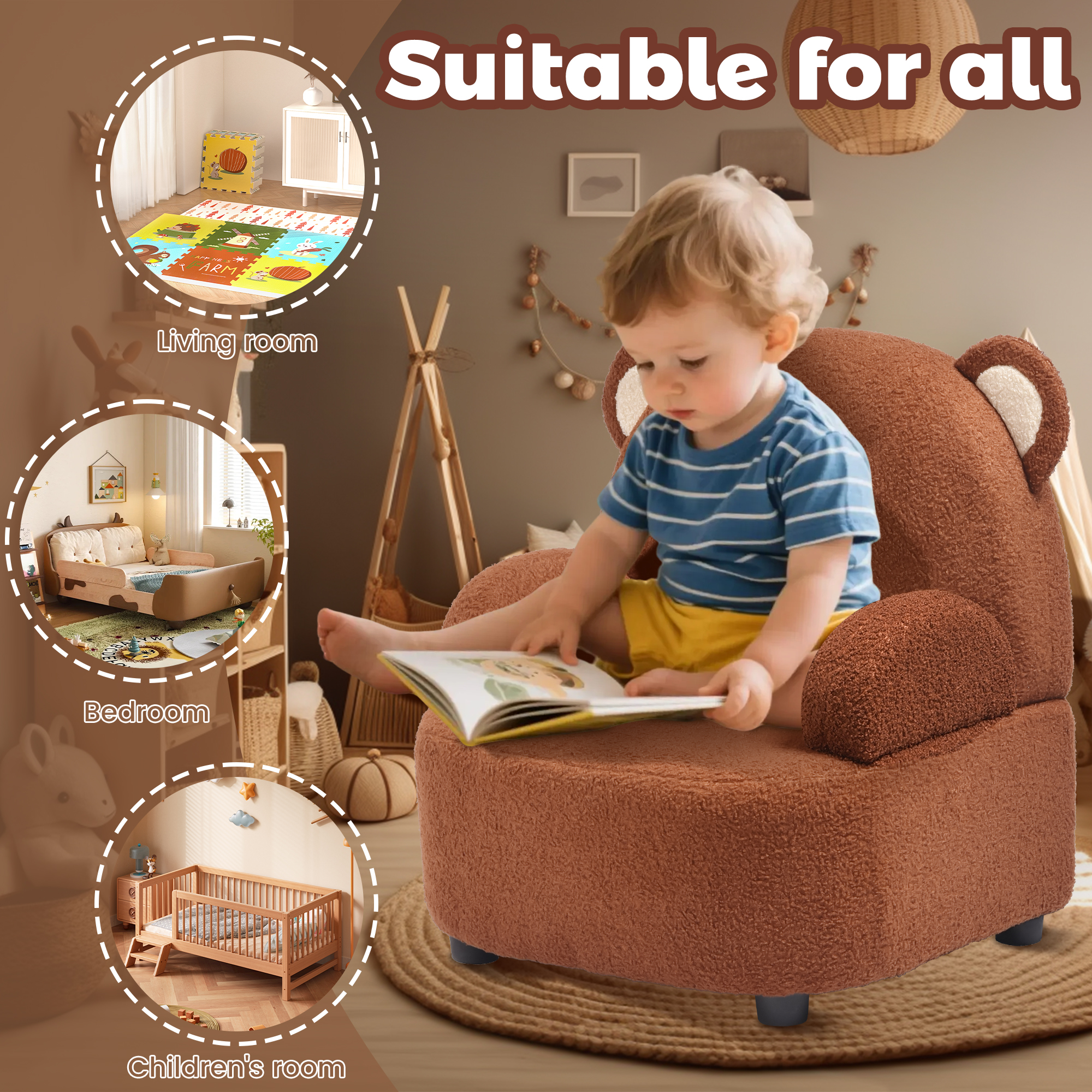 This YEEZEE Little Bear Toddler Comfy Chair Is Made of High-Quality Solid Wood Frame, Which Is Stable and Durable with Strong Load-Bearing Capacity. The Anti-Deformation Structure Allows Children to Jump and Play Without Worries. The Legs of The Kids Couch Is Detachable to Help Children Maintain a Correct Sitting Posture. The Toddler Chairs Is Made of Top-Quality Teddy Fleece Fabric, Which Feels as Soft and Skin-Friendly as Hugging a Teddy Bear. It Is Paired with a High-Density Sponge Cushion, Which Does Not Collapse Even After Long Sitting and Has Good Resilience. Child Chairs for Kids Age 1-4.
