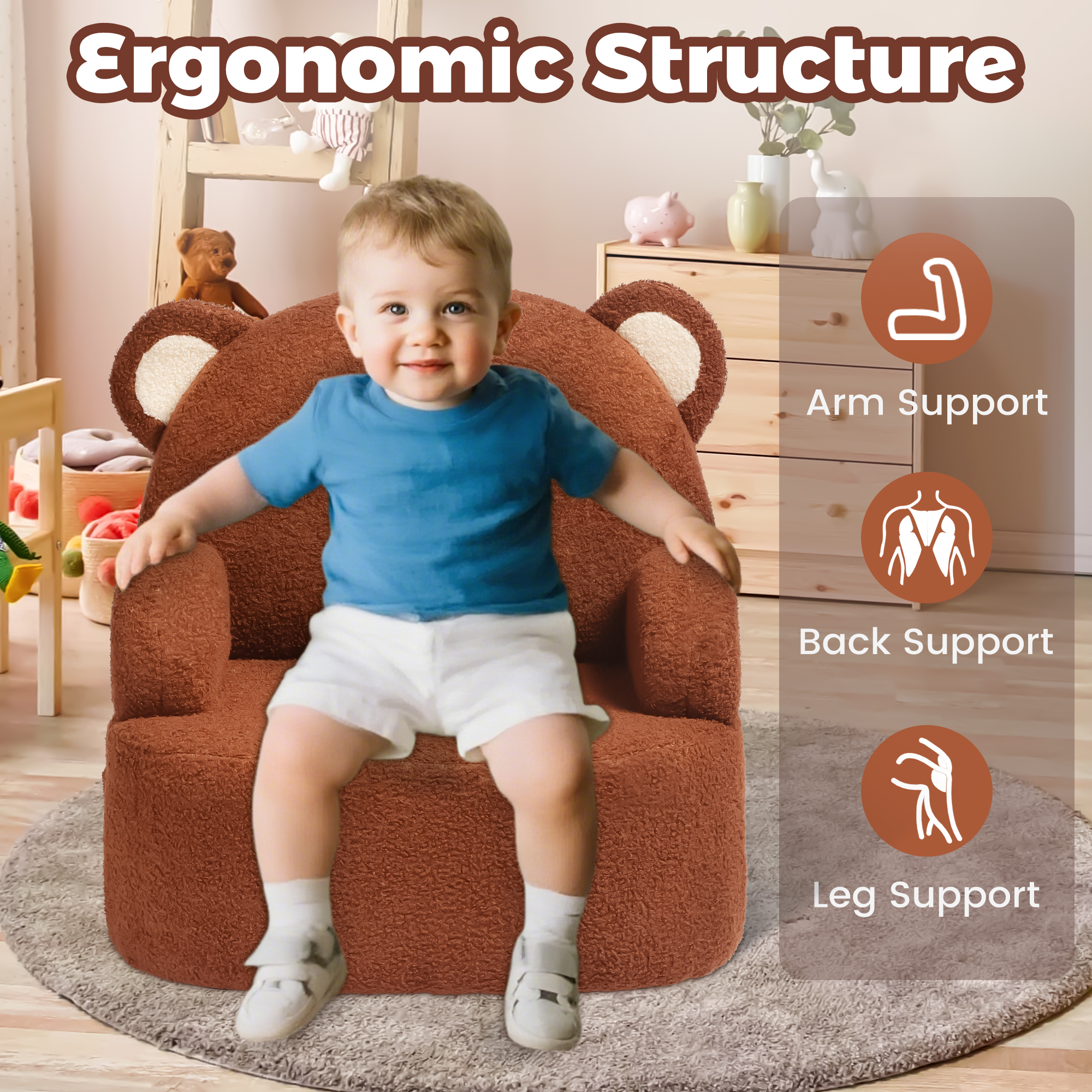 - 【Comfortable Sitting Experience, Skin-Friendly and Safe】This Toddler Couch Is Made of Top-Quality Teddy Fleece Fabric, Which Feels as Soft and Warm as Hugging a Teddy Bear. The Fine Fleece Has Been Specially Treated to Prevent Shedding and Flaking. The Seat Cushion Is Lined with High-Density Sponge, Which Won't Collapse Even After Prolonged Sitting and Has Good Resilience.