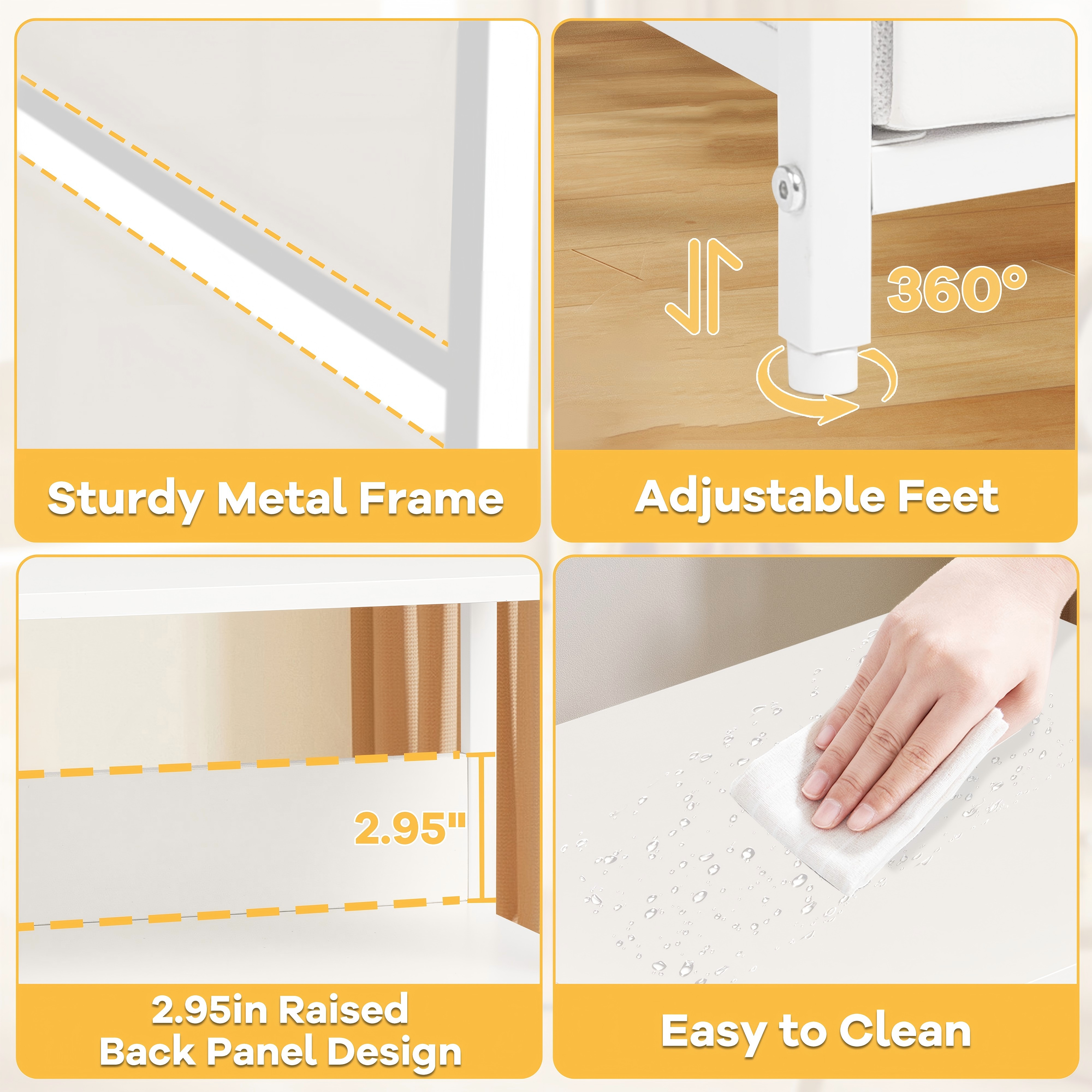 - 【Stable & Durable Frame】Sturdy rust-resistant steel frame with PU coating, wipe-clean and wear-resistant. 4 adjustable feet ensure stability on uneven floors.